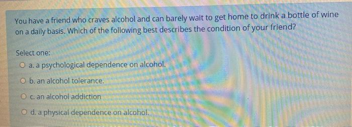 Solved You Have A Friend Who Craves Alcohol And Can Barely Chegg Com
